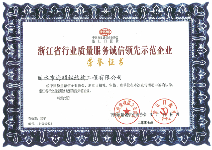 公司本著“質(zhì)以誠(chéng)信、量以興業(yè)”的經(jīng)營(yíng)理念,并以精湛的技術(shù)、現(xiàn)代化的設(shè)備、科學(xué)的管理、優(yōu)質(zhì)的服務(wù)為廣大用戶(hù)提供高品質(zhì)、多用途的產(chǎn)品。隨著企業(yè)不斷的努力,穩(wěn)步的發(fā)展、壯大,公司將繼續(xù)以“誠(chéng)信”為宗旨,繼往開(kāi)來(lái)。海順建設(shè)公司愿意與本行業(yè)同仁一起努力,開(kāi)創(chuàng)中國(guó)鋼結(jié)構(gòu)產(chǎn)業(yè)的世界品牌。